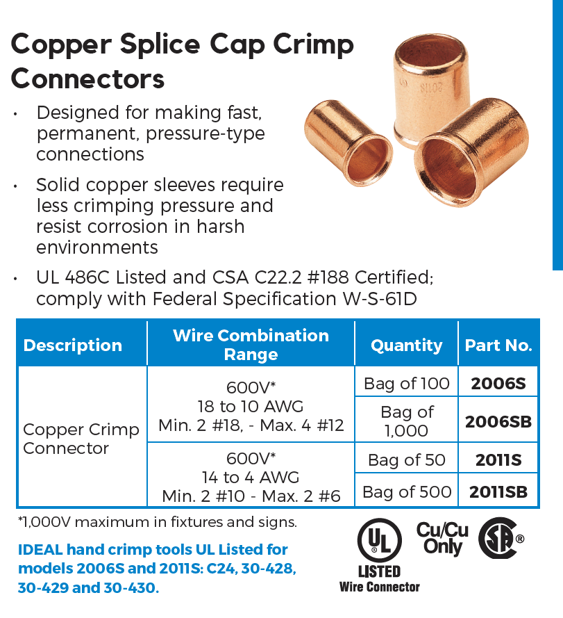On the attached product spec sheet for Ideal Copper Crimps (aka Buchanan