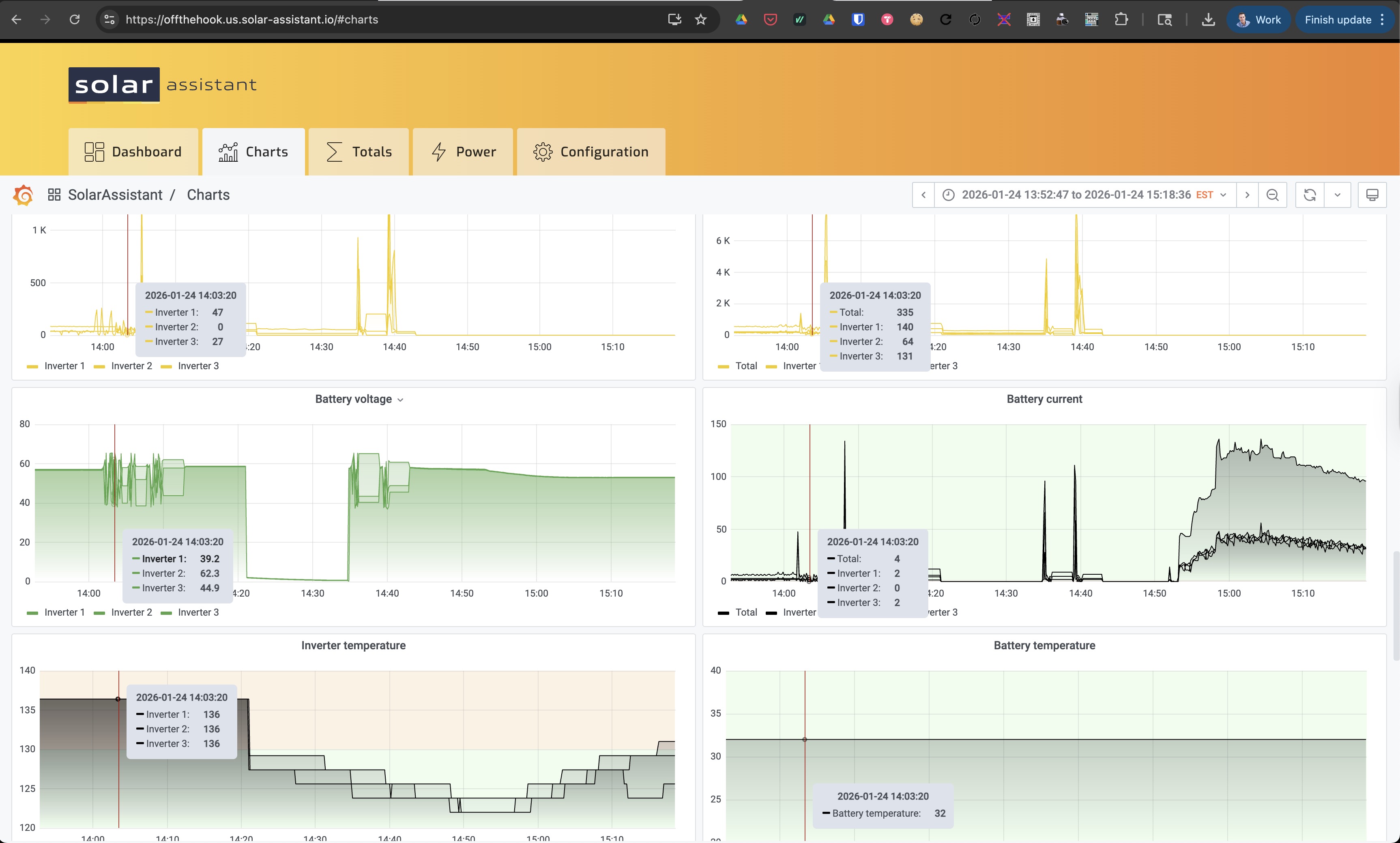 I do see some solar charging spikes, so it looks like the inverters would