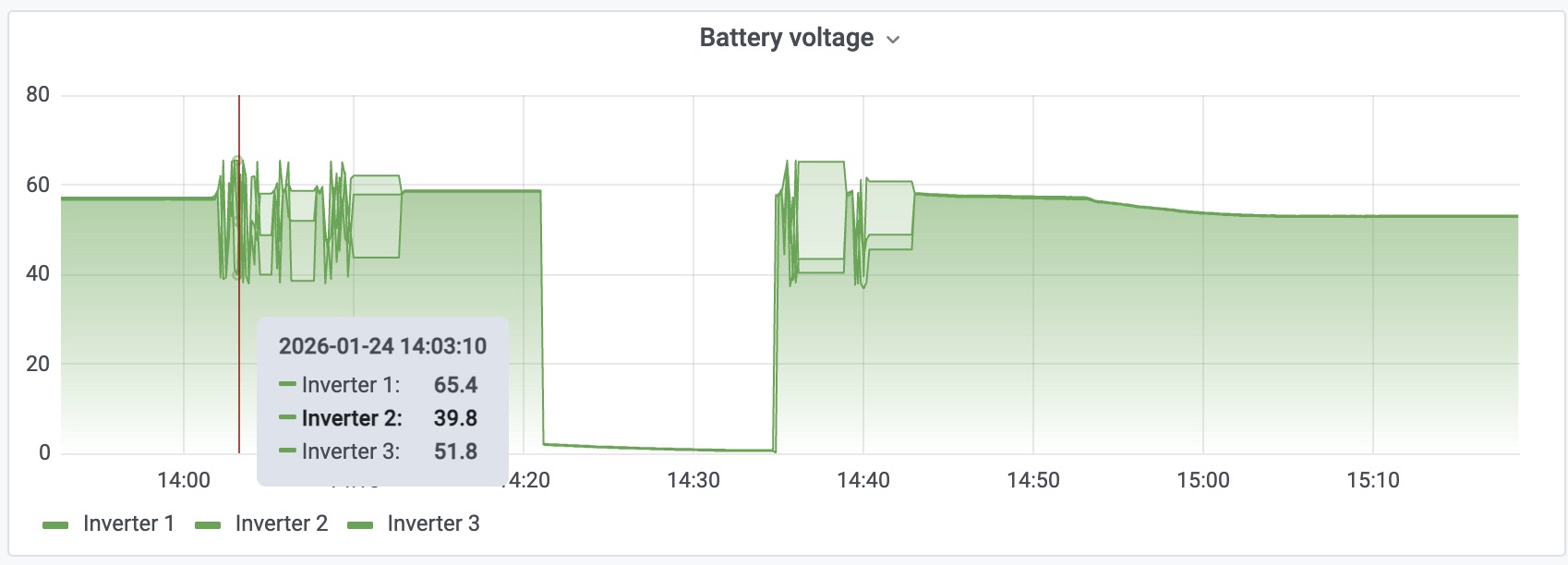 I got some data from Solar Assistant (attached) that shows erratic voltage